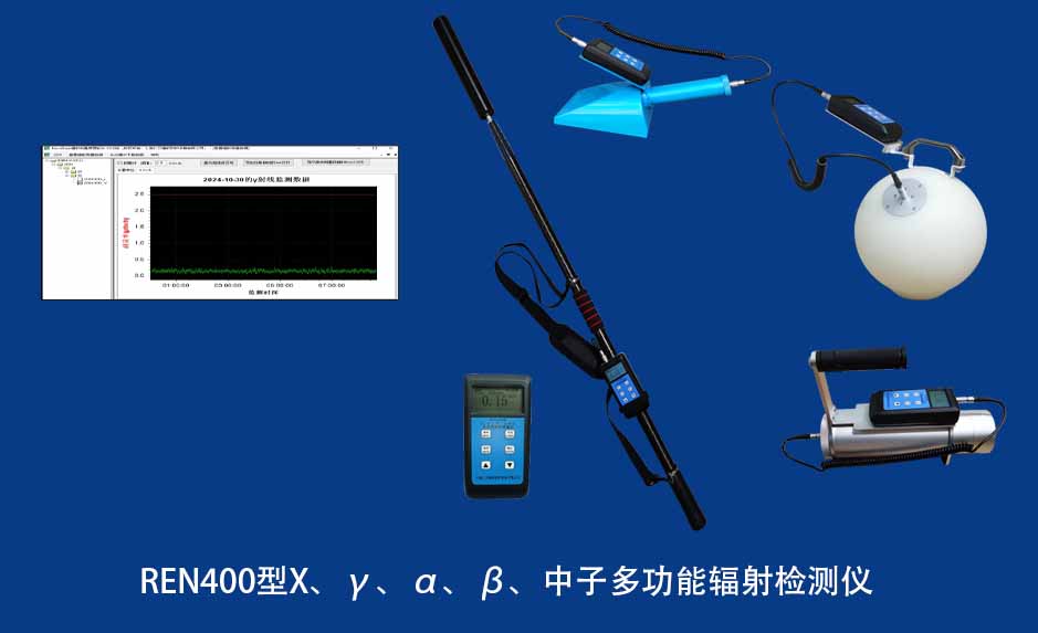 • REN400 多功能射線劑量?jī)x REN400型多功能輻射檢測(cè)儀是以內(nèi)置高靈敏度蓋格計(jì)數(shù)管為探測(cè)器,外接不同類型的探頭來實(shí)現(xiàn)對(duì)低劑量χ、γ射線,高劑量χ、γ射線,α、β射線和中子射線的檢測(cè)。作為多功能輻射巡測(cè)儀,能顯示工作場(chǎng)所的輻射值,自動(dòng)連續(xù)測(cè)量和記錄280萬條輻射劑量率數(shù)據(jù),更換電池時(shí),日歷、時(shí)間及檢測(cè)數(shù)據(jù)能永久保存。工作人員可以任意設(shè)定報(bào)警值,超閾值后自動(dòng)發(fā)出聲音、震動(dòng)和光報(bào)警。多功能輻射檢測(cè)儀適用于核設(shè)施、核技術(shù)應(yīng)用單位、廢舊鋼鐵、防化部隊(duì)、 加速器、同位素應(yīng)用、工業(yè)X、γ無損探傷、放射醫(yī)療、鈷源治療、γ輻照、放射性實(shí)驗(yàn)室的輻射場(chǎng)