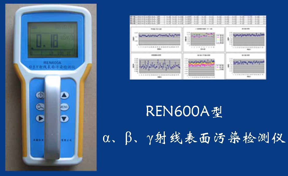 • REN600A α、β、γ多功能污染儀REN600A型α、β、γ射線表面污染檢測(cè)儀即可檢測(cè)α、β、γ射線,也能檢測(cè)到X射線,它采用高速嵌入式微處器作為數(shù)據(jù)處理單元,點(diǎn)陣式大屏幕LCD液晶顯示,讀數(shù)清晰、操作方便,具有400條超大容量數(shù)據(jù)存儲(chǔ)。儀器采用進(jìn)口的大面積MICA蓋革探測(cè)器,具有較高探測(cè)效率,可進(jìn)行α、β輻射表面污染檢測(cè)和X、γ輻射劑量率的監(jiān)測(cè)。此外通過配套的RenriCont表面污染管理軟件可將存儲(chǔ)的數(shù)據(jù)讀出后分析?蓮V泛用在制藥廠、實(shí)驗(yàn)室、發(fā)電廠、進(jìn)出口商檢、采石場(chǎng)、環(huán)境實(shí)驗(yàn)室、環(huán)境污染調(diào)查、核安全應(yīng)急、緊急狀況營(yíng)救站、金屬處理廠、地下油田、供油管道裝備、醫(yī)院核醫(yī)學(xué)科、同位素實(shí)驗(yàn)室